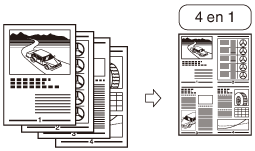 Puede reducir dos o cuatro imágenes originales para que se ajusten a una hoja de papel.