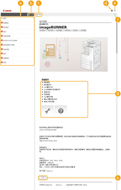 启动“电子手册”时显示。
