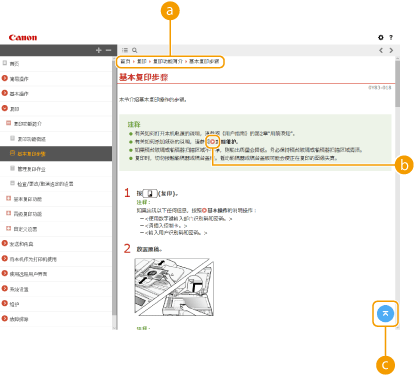 单击可以显示有关如何查看“电子手册”、如何执行检索的信息以及其他信息。