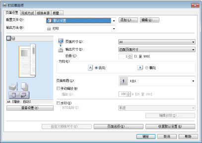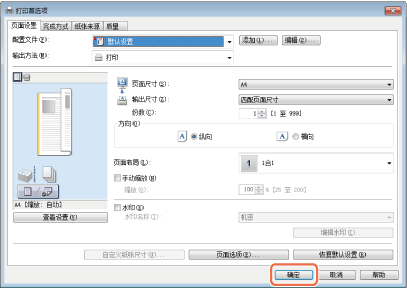 在打印机设置对话框的各页面中,指定满足个人喜好的打印设置→单击[确定]。