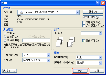 根据需要,指定打印份数和打印页数→单击[确定]。*