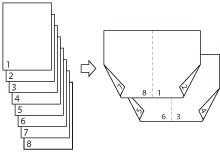 접어서 책 형태로 제본되도록 원고를 복사할 수 있습니다.