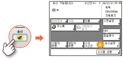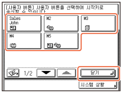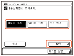 (송신)을 누를 때 처음 표시할 화면을 지정할 수 있습니다. 사용자 버튼 화면, 원터치 화면 또는 송신 및 팩스 기능의 시작 화면을 처음 표시할 화면으로 선택할 수 있습니다.