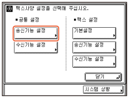 [통신 관리 설정] → <공통 사양 설정> 아래에 있는 [송신기능 설정]을 누릅니다.