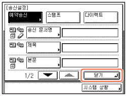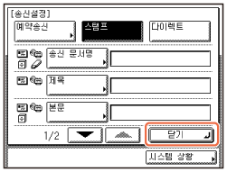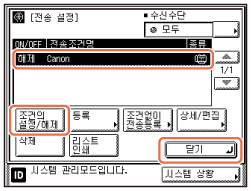 원하는 전송 설정을 선택하고 → [조건의 설정/해제]를 누른 후 → [닫기]를 누릅니다. 시작 화면으로 돌아가려면