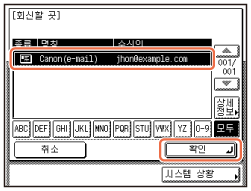 회신할 곳 주소를 선택하고 → [확인] → [닫기]를 누릅니다.