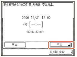 – (숫자 키)를 사용하여 문서 송신 시간을 입력하고 → [확인]을 누릅니다.![]() |