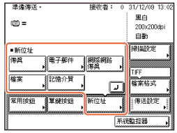 也可以透過使用[通訊錄]、[常用按鈕]或[單鍵按鈕]指定接收者。這些功能省去了每次傳送文件時輸入接收者位址的麻煩。