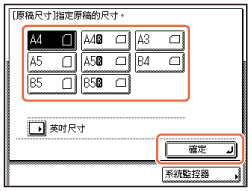 出現以下螢幕時,選擇原稿尺寸→按[確定]。
