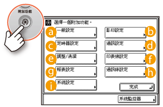 從「附加功能」螢幕,可以根據需要自訂本機器的設定。