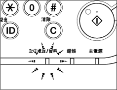 接收文件時,控制面板上的「正在處理/資料」指示燈閃爍綠光。