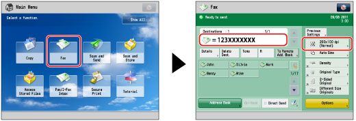 Press [Fax] → specify the desired destinations → press the resolution button.