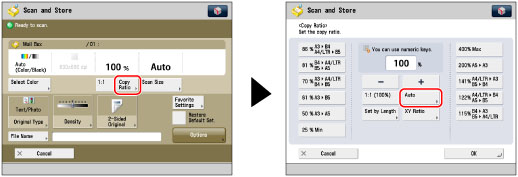 Press [Copy Ratio] → [Auto].