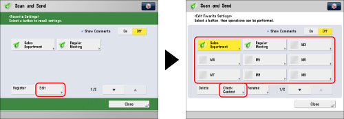 Press [Edit] → select the button to check the settings for → press [Check Content].