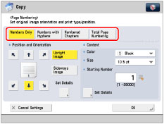 If you use [Page Numbering] with [Add Cover] or [Insert Sheets], numbers will not be printed on the inserted pages.