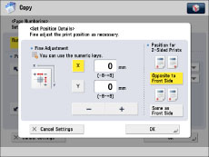If you set any two of [Copy Set Numbering], [Watermark], or [Print Date] to print in the same position, a confirmation message appears when you press