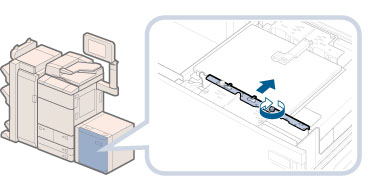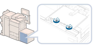 Similarly, fasten the black adjustment screw on the right using a coin, screwdriver or something similar while slightly pressing the outer size change plate against the paper stack.