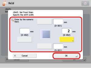 If you enter a value other than 0, you can switch between the positive and negative margin widths by pressing [±].