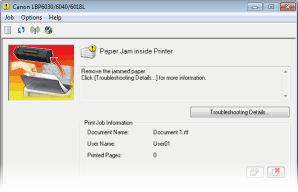 The Printer Status Window and Remote UI* allow you to manage the machine remotely from the computer at your desk. You can monitor the state of the machine from your computer, and also check error information. Whenever a printing error occurs, the Printer Status Window appears automatically to notify you with easy to understand messages and animations. Save time and trouble by eliminating trips between your desk and the machine. The Remote UI makes it simple to configure the machine, including the many network setting items.