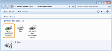 If the printer driver has been installed correctly, an icon for the installed printer will be displayed in the printer folder (Displaying the Printer Folder).