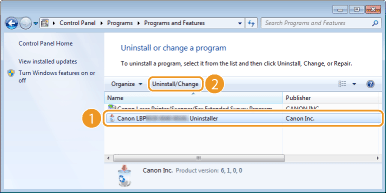 To start the uninstaller from a printer driver file that you downloaded, carry out the following step.