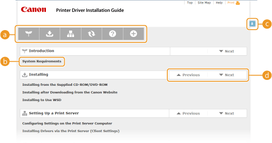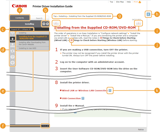 Topic pages contain information about how to install printer drivers.