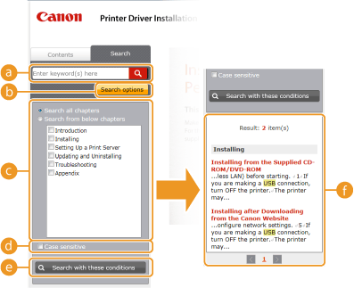 This displays pages that contain the specified keywords. From the results, locate the page you are looking for and click the topic title of the page. If the results cannot be displayed on one page, click
