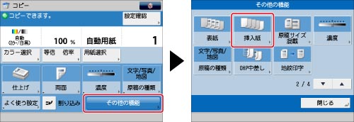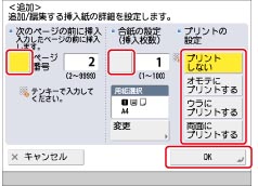 [挿入紙]と[表紙]を組み合わせて設定する場合は、同じ用紙サイズを選択してください。