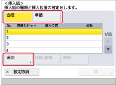 挿入紙を削除するときは、削除したい設定内容を選択してから[削除]を押します。
