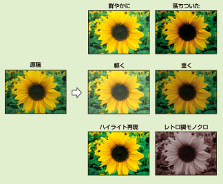 画質をニュアンスで選んでワンタッチで変更し、コピーできます。画質は、次の6 種類があります。