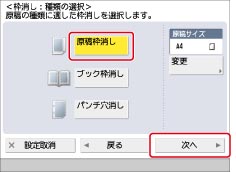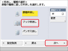 ブック枠消しコピーできる原稿は、表示されている原稿サイズのみです。