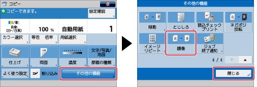 [その他の機能]→[鏡像]→[閉じる]を押す