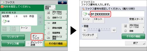 ワンタッチボタンを選択して相手先の電話番号やファクス番号を指定することもできます。