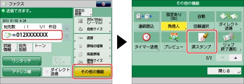 宛先を指定→[その他の機能]→[済スタンプ]を押す