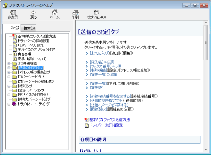 ファクスドライバー画面の[ヘルプ]をクリックすると、ヘルプが表示されます。