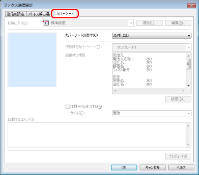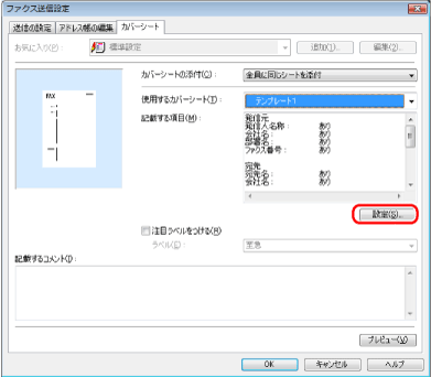 カバーシートに記載する項目を設定する場合は、[設定]をクリック