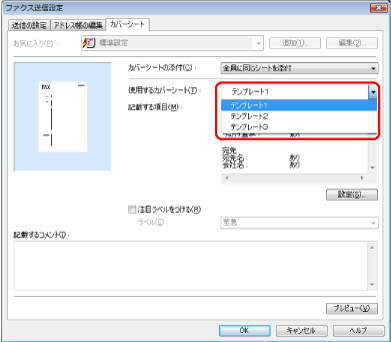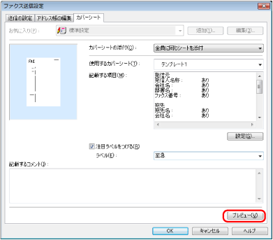 作成したカバーシートのプレビューを見る場合は、[プレビュー]をクリック