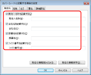 発信元について記載する項目にチェックマークを付ける→記載内容を入力