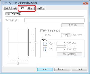 ロゴを印刷する場合には[ロゴ]タブの[ロゴをつける]、署名を印刷する場合には[署名]タブの[署名をつける]にチェックマークを付ける