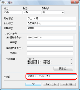 すでに登録された個人のアドレスも編集できます。詳しくは、ファクスドライバー画面の右下の[ヘルプ]をクリックして、ヘルプを参照してください。