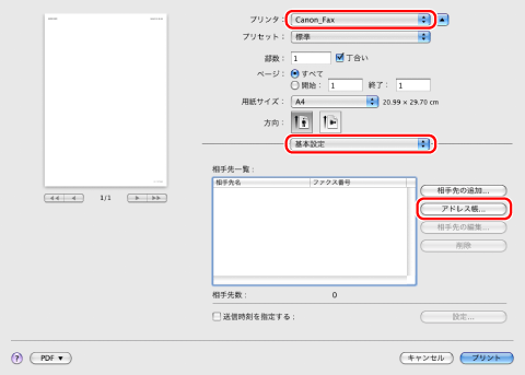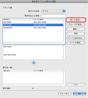 登録した個人アドレスをアドレス帳から削除するには、[相手先名をアドレス帳から選択]ダイアログの相手先リストから個人アドレスを選択したあと、[削除]をクリックします。