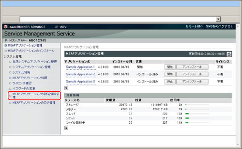 [MEAPアプリケーションの設定情報管理]をクリック