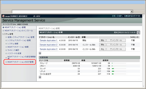 [MEAPアプリケーションのログ管理]をクリック