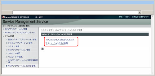 [アプリケーションログのダウンロード]をクリック