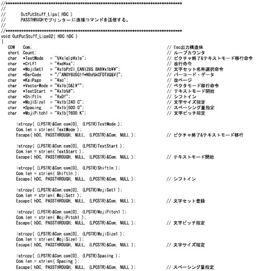 LIPSモードでスケーラブルフォントを使用し、EAN-128のバーコードを印刷する場合。(メインプログラムは「VC++用共通サンプルメインプログラム」を参照)