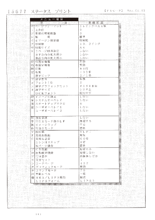 ここに掲載されているステータスプリントはサンプルです。お使いのプリンターで出力したステータスプリントとは一部内容が異なる場合があります。