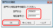 [部門ID]と[暗証番号]を入力→[OK]をクリック
