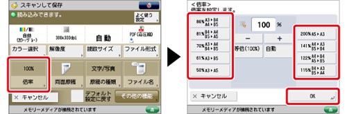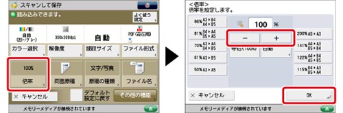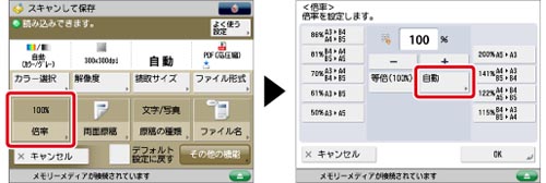 OHPフィルムのように透明度の高い原稿は自動的に倍率を設定できません。定形変倍またはズーム変倍で読み込みしてください。