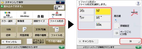 カラーモードにかかわらずXPS形式で保存されます。さらに追加設定を選択できます。