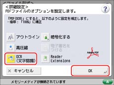 [OCR(文字認識)]を設定したとき、場合によっては正しくOCR処理されないこともあります。(→正しくOCR(文字認識)処理されないときには)